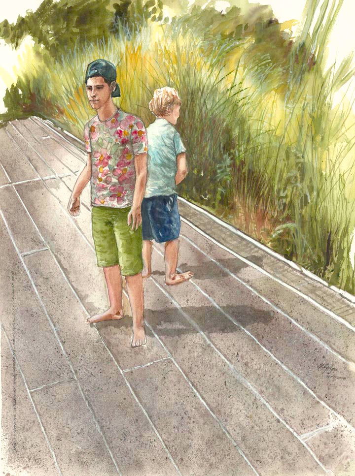 The Highline is a garden walkway built on elevated rail tracks. It's a great place to people-watch as well as to walk. On this particular day, I enjoyed these two young boys happily playing on the walkway.