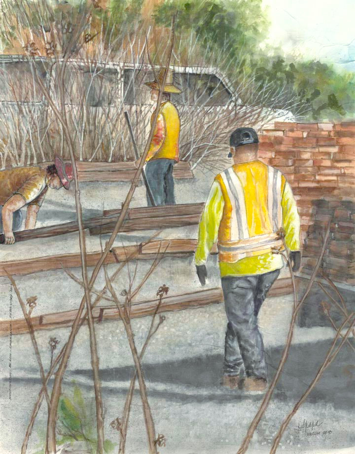 Bea's niece, Judi, lives in Huntington Beach, California. On a trip there we walked down to the beach where we saw workmen putting in a new walkway.