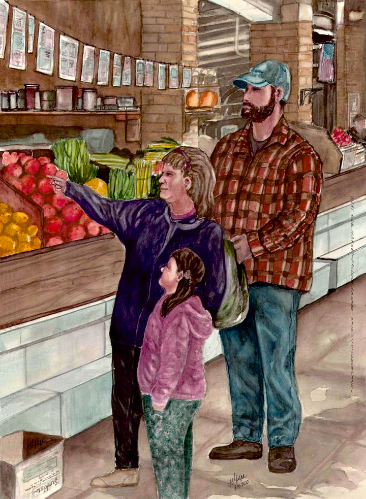 The West Side Market in Cleveland has an endless vegetable arcade. I noticed a family admiring the produce and I thought their little daughter was especially cute.