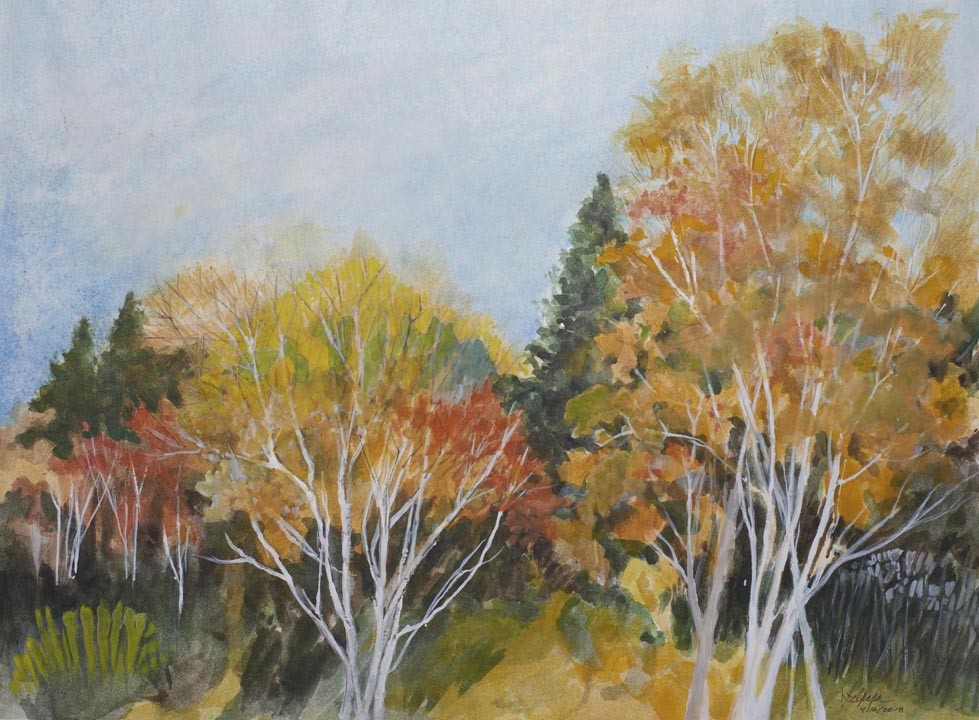 Driving back to Cleveland from Pittsburgh one afternoon, I was enthralled by the gorgeous Fall colors that I was seeing. This painting was the result.