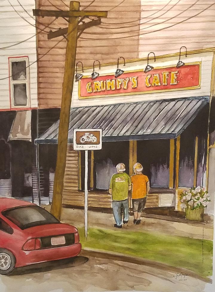 A scene from Cleveland’s Tremont neighborhood, this painting features a well-loved restaurant known for serving one of the best breakfasts in town. It’s not uncommon to see a line out front, especially on weekends. A familiar sight for locals, this piece reflects the everyday rhythm of a neighborhood morning—fitting for home kitchens, guest spaces, or welcoming corners of cafes and small hotels.