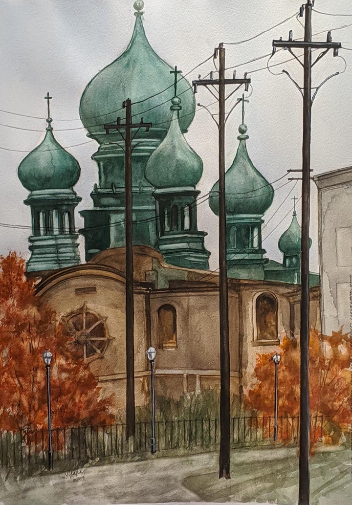 This original watercolor features St. Theodosius Russian Orthodox Church, a masterpiece of design in Cleveland’s Tremont neighborhood. Partially funded by a donation from the Czar of Russia, the church is a remarkable architectural landmark. The twelve smaller domes represent the apostles, while the large center dome symbolizes Jesus. Painting this structure was as much about honoring its history as capturing its beauty—something that speaks to anyone drawn to place, symbolism, and quiet grandeur.