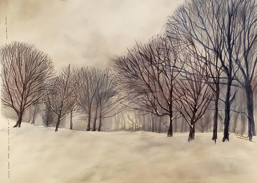 This is another view of snowy Central Park in New York City, seen from a window at the Metropolitan Museum of Art while I was having lunch. The hush of winter over the park, framed by the window’s edge, made for a peaceful, reflective scene. This watercolor holds onto that quiet moment—ideal for home decor, guest spaces, or interiors that appreciate the softer side of city life.