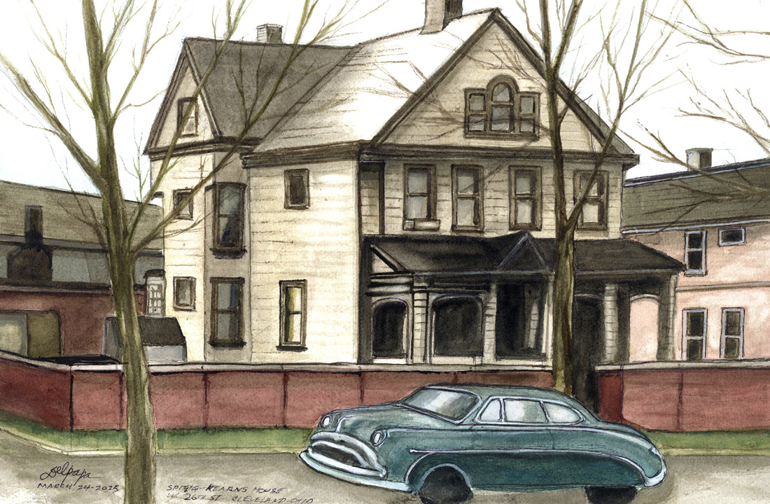 This watercolor recalls a house built in 1892, once owned by Verona Kearns and her husband, who also ran a small café and cozy beer garden beside it. The family carried on there until the 1950’s, when the property was sold. Though the house is now long gone—replaced by parking for residents of Plum Stone Court—the painting restores its presence with gentle strokes that carry both the memory of place and the feeling of home.